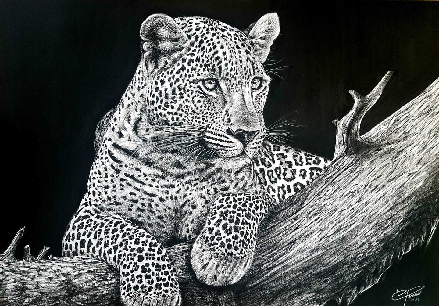Dès son plus jeune âge, ici à la Tour-du-Pin, Damien est tombé dans une marmite remplie de papiers et de crayons. Sa potion magique depuis ? Dessiner et reproduire des animaux plus vrais que nature en noir et blanc dans un safari aux accents crayonnés. De son outil fétiche la Pierre Noire, aux crayons de couleur, en passant par le stylo bille, c’est à la pointe de ces différentes mines qu’il donne vie à ses modèles, aux regards empreints de liberté, de sagesse ou de tendresse. Et c’est dans ce voyage en « Crayonie » qu’il vous invite au travers de cette exposition.