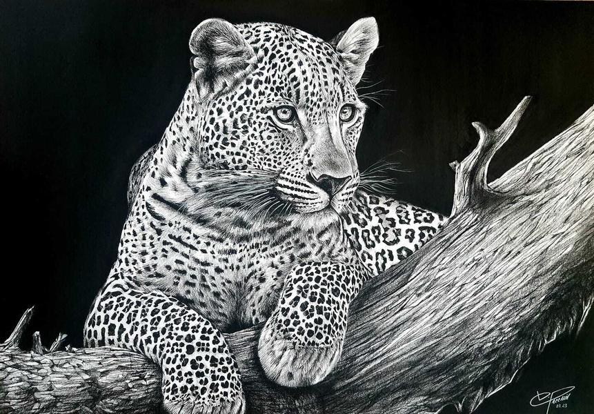 Dès son plus jeune âge, ici à la Tour-du-Pin, Damien est tombé dans une marmite remplie de papiers et de crayons. Sa potion magique depuis ? Dessiner et reproduire des animaux plus vrais que nature en noir et blanc dans un safari aux accents crayonnés. De son outil fétiche la Pierre Noire, aux crayons de couleur, en passant par le stylo bille, c’est à la pointe de ces différentes mines qu’il donne vie à ses modèles, aux regards empreints de liberté, de sagesse ou de tendresse.