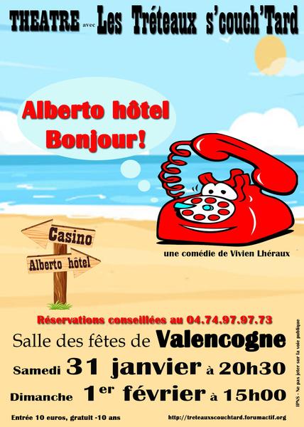 Comédie en 3 actes de Vivien Lheraux. Entre son personnel incompétent, des clients insolites et un cambriolage au casino voisin, le directeur de l'hôtel Alberto ne sait plus où donner de la tête !