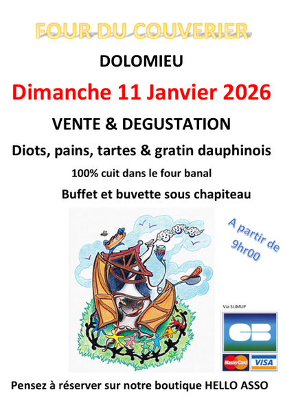 Le four du couverier propose à la vente des diots, du gratin dauphinois, boule de pain et des tartes au sucre et aux parlines. Tout est cuit au four à pain du quartier.