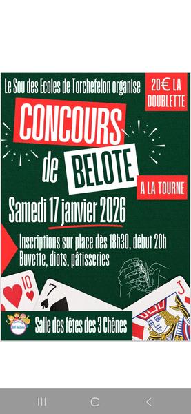 Concours de belote à la tourne. Vente de diots, pâtisseries et buvette sur place.