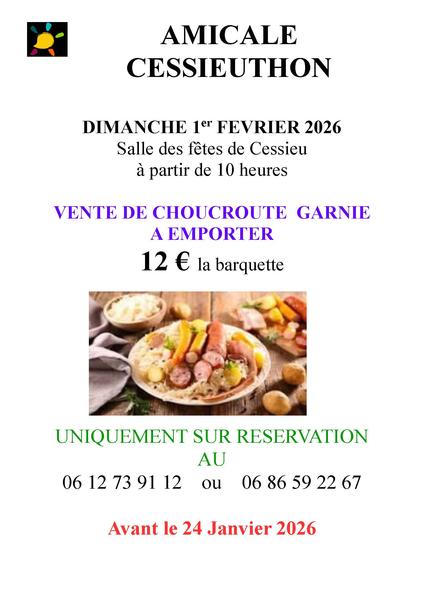 Vente de choucroute à emporter au profit du Téléthon de Cessieu. Org. Amicale Cessieuthon.