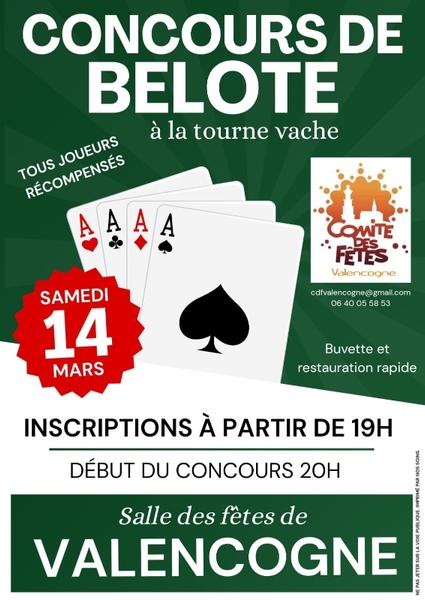 Le comité des fêtes de Valencogne organise un concours de belote à la tourne vache.