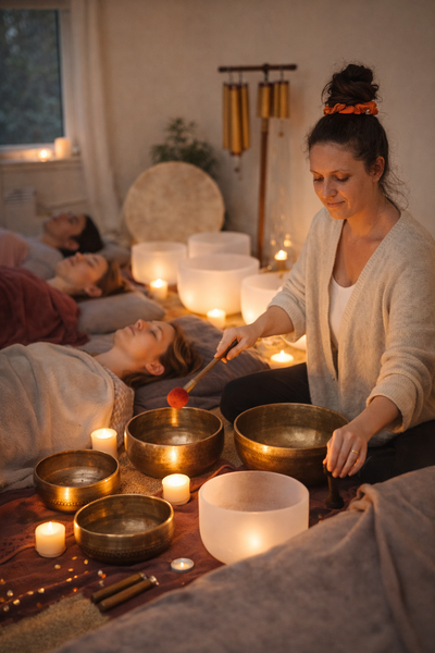 Rituel sonore issu du yoga spécial ancrage "Retour à la terre". Au programme : travail du souffle, méditation guidée et vibrations profondes des bols tibétains et autres instruments.