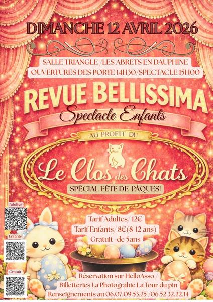 Spectacle et goûter pour enfants avec la troupe de la revue Bellissima. Au profit du Clos des chats.