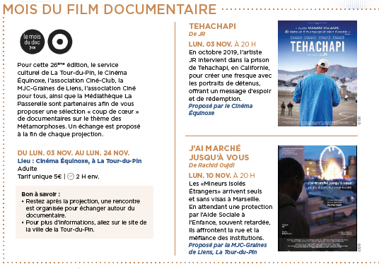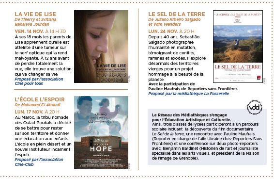 Le mois du film ddocuemntaire, c'est une sélection de films documentaires projetés au cinéma Équinoxe, avec un échange sur le sujet après chaque projection.