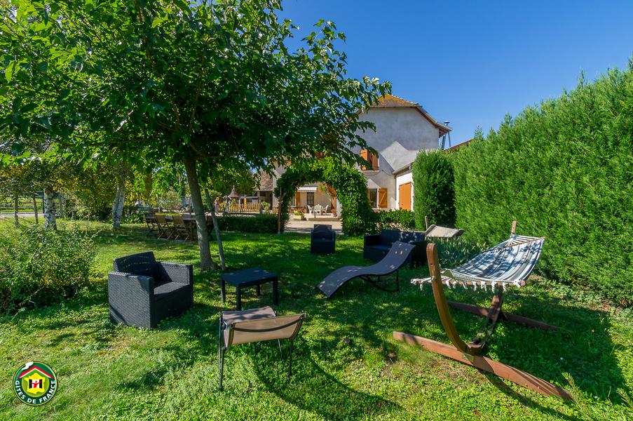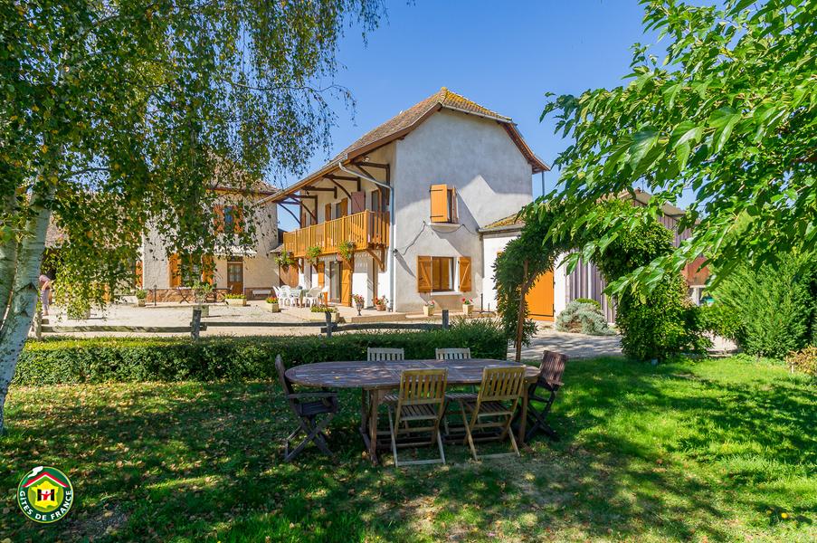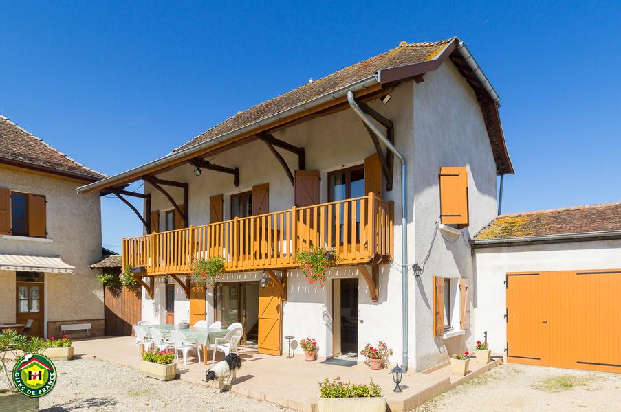 Nicole & Marc welcome you to a pretty corner of the countryside with a view of the Chartreuse, Bugey, and Vercors. You will have a large living room-kitchen with lounge area & fireplace, 1 bedroom (1 double bed), shower room, wc. On the first floor all the rooms have a private bathroom and a balcony. Ch.2 (2 single beds), Ch.3 (1 double bed), Ch.4 (1 double bed). Central heating, linen, flat screen TV, wifi, bicycle & motorcycle garage.