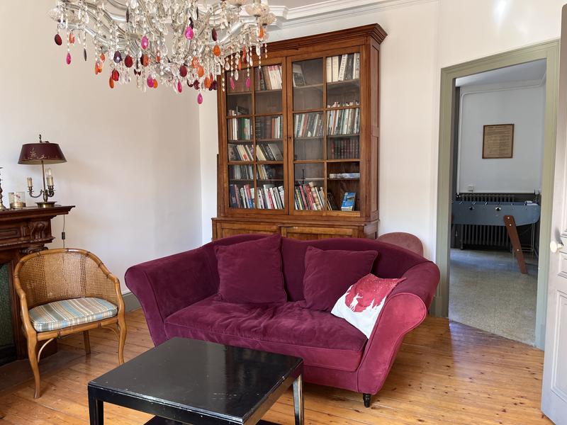 Elle est composée de 6 chambres, de plusieurs pièces de vie, d'une cuisine d'été avec terrasse, d'un abri vélo / pêche et d'un jardin ombragé au calme.