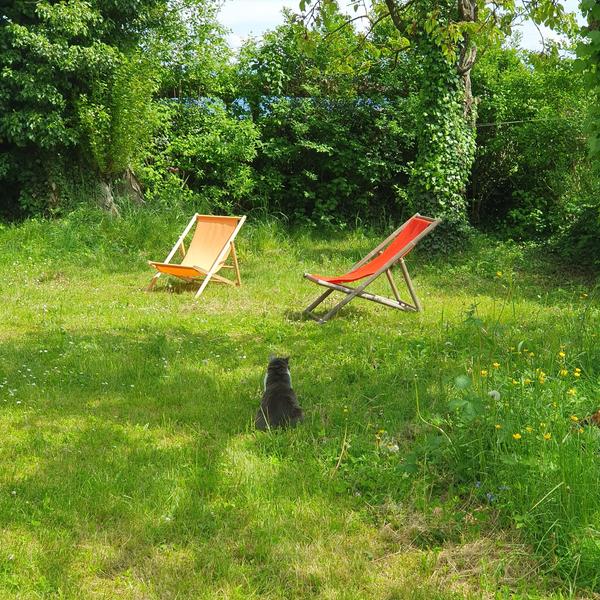 A l'extérieur : espaces arborés, mobilier extérieur, toilettes sèches et douche extérieure, dans un cadre relaxant et inspirant, avec un large panorama de la Dent du chat à la Chartreuse.